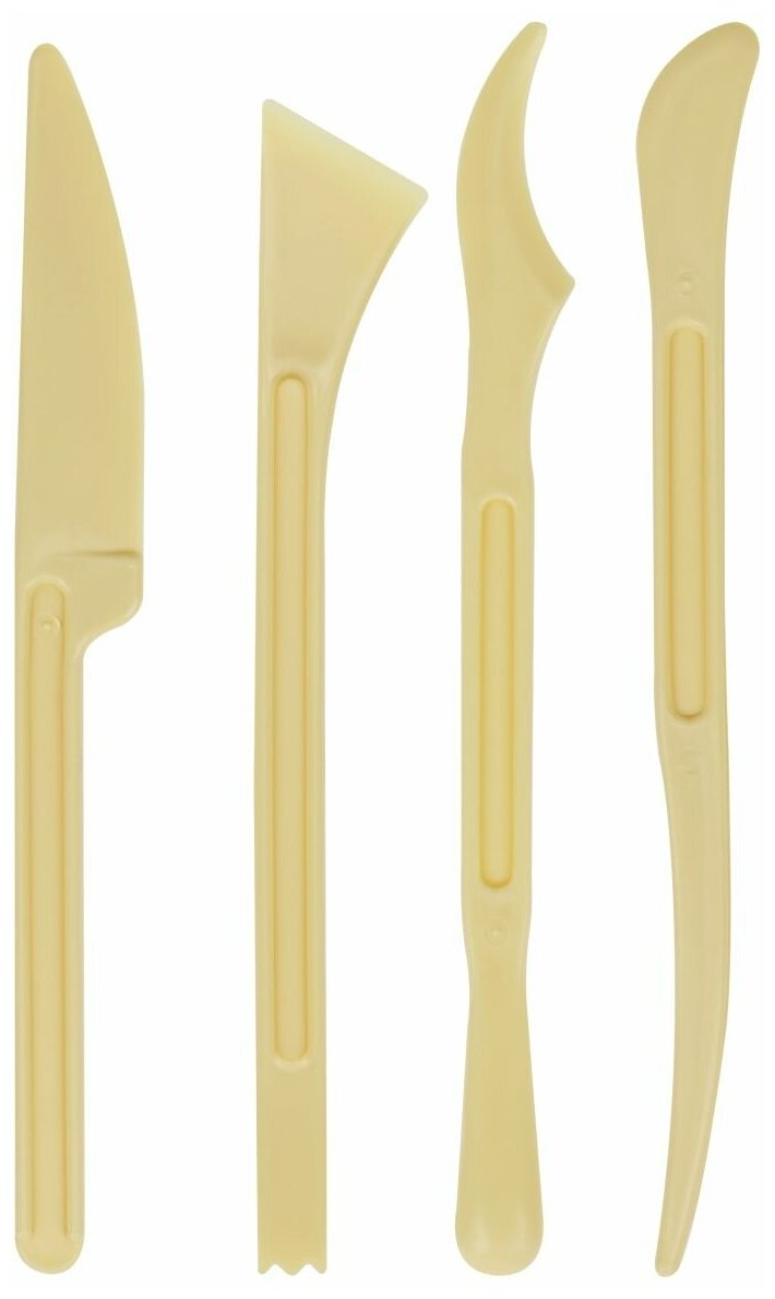 Набор стеков для пластилина из пластика, цвета слоновой кости. Стеки используются для работы с детским пластилином, легко моются водой, нетоксичны и не вызывают аллергии. В наборе 4 стека для пластилина разной формы и назначения, стеки могут использоваться многократно, не имеют срока годности. Упакованы в прозрачную пленку.