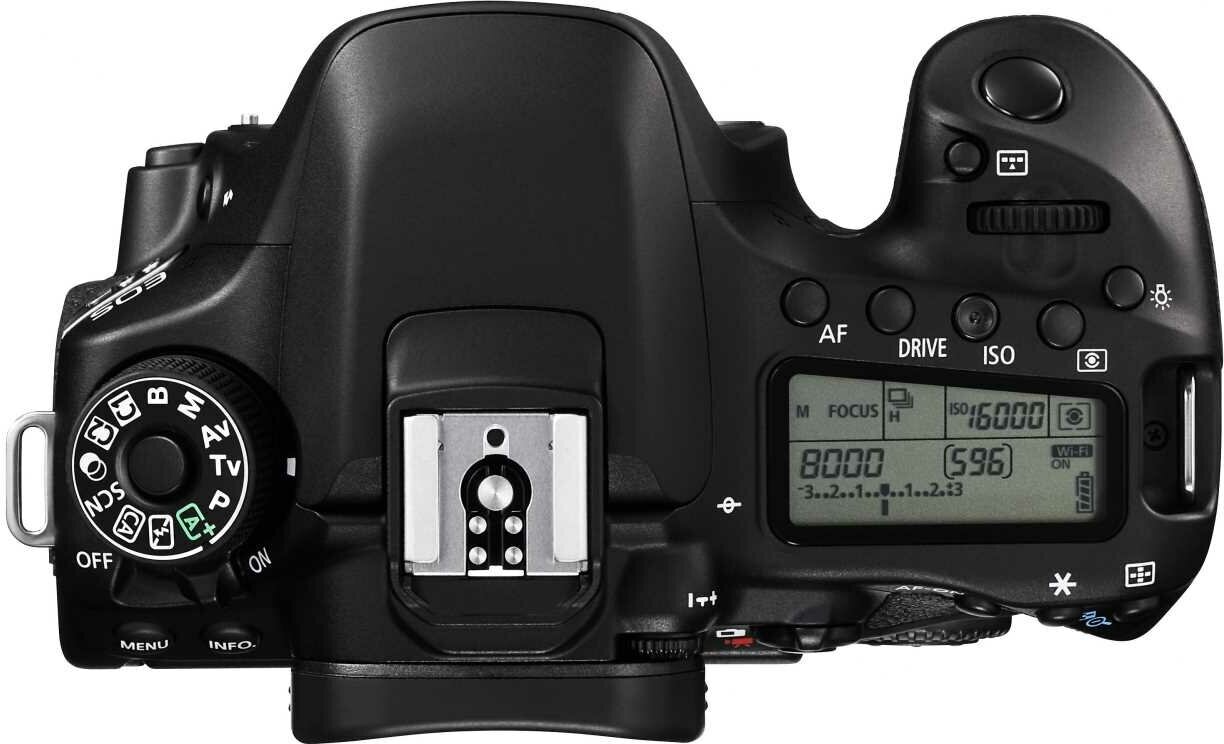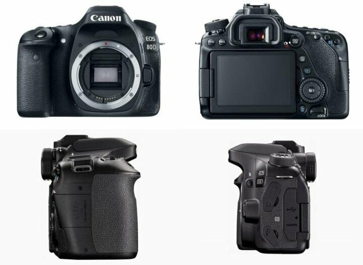 Модель 80D можно назвать развитием предыдущей модели, причем революционных изменений не просматривается. Камера получила новую матрицу разрешением 24,2 МП с естественным диапазоном светочувствительности 100—16000 ISO и, самое главное, двухпиксельной системой фокусировки. Усовершенствованный процессор DIGIC 6 и имеет слегка измененную схему управления, сохранив узнаваемый и подчиненный эргономике дизайн Canon.