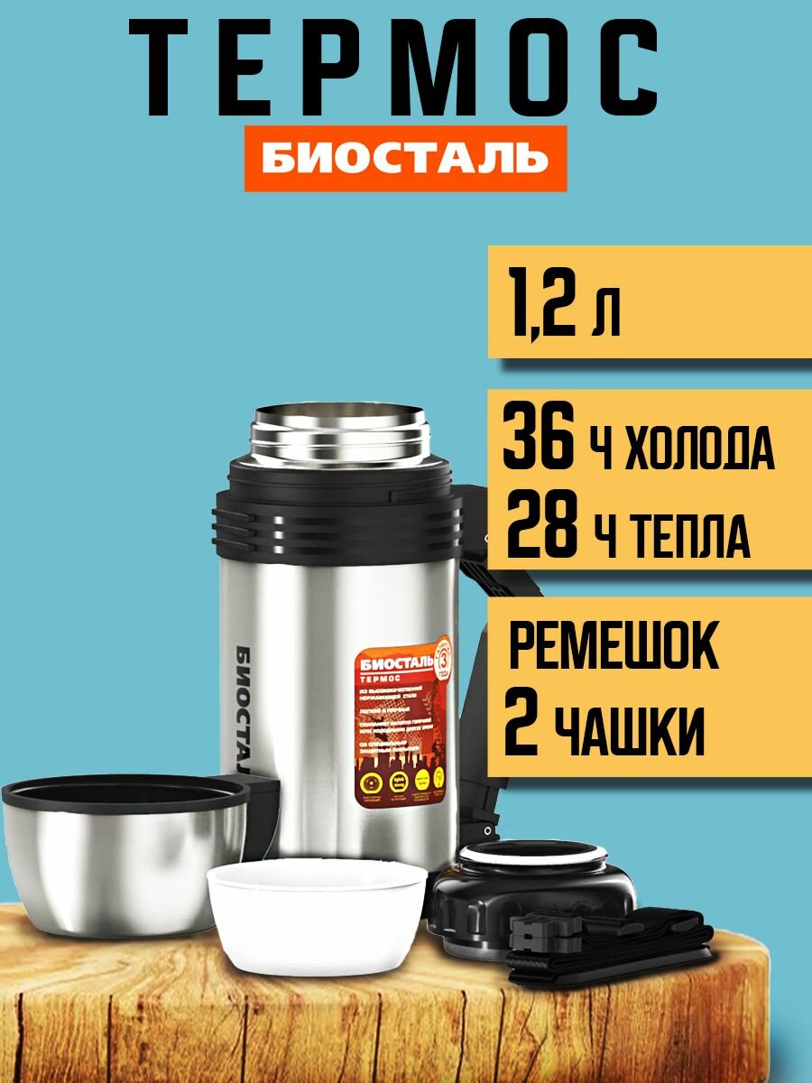 Термос для питания и жидкостей Biostal Спорт NGP-1200P цвет: стальной/черный
