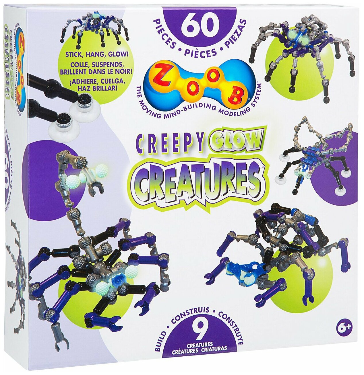 «Они висят, они ползают, и они передвигаются по Вашей стене!» С ZOOB Creepy Glow Creatures Вы можете оживить самые страшные фантазии из своего воображения. Вы сможете их оживить! Ваш дом наполнится страшными монстрами, которые будут двигаться и светиться в темноте! В состав набора входят 60 элементов ZOOB, некоторые части светятся в темноте! В комплект входит инструкция, в которой подробно расписано, как построить 8 жутких монстров: пауков, скорпионов, крабов и др. Ребенок сможет, как собирать модели, так и играть со своим готовыми «творением». Это намного лучше, чем просто поставить на полку и смотреть на готовую модель. Юный изобретатель может сначала посмотреть пошаговые схемы, описанные в инструкции, а затем позвать на помощь свою фантазию и создать абсолютно новые конструкции.Конструктор ZOOB состоит 5 элементов и более 20 различных соединений. Уникальное строение деталей конструктора ZOOB обеспечивает прекрасную подвижность соединений. Детали конструктора настолько прочные, что производитель дает пожизненную гарантию на элементы. Конструктор ZOOB прекрасно подходит и мальчикам, и девочкам. Его многовариантность помогает создавать, исследовать и обучаться, используя воображение ребенка в качестве главного помощника. В процессе игры с конструктором ZOOB у детей развиваются творческие способности, моторика, проявляются способности выхода из проблемных ситуаций. Юный изобретатель может сначала посмотреть пошаговые схемы, описанные в инструкции, а затем позвать на помощь свою фантазию и создать абсолютно новые конструкции.