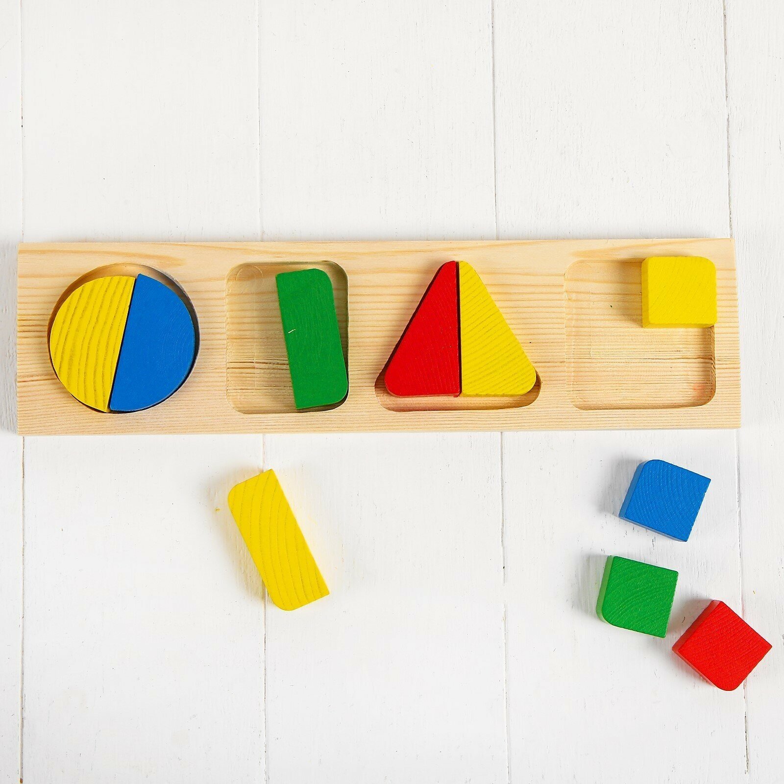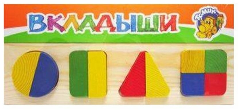 Данная игрушка-вкладыш состоит из красивых, ярких деревянных геометрических фигур. Благодаря данному набору ребенок учится различать формы. Его задача: понять, какая фигурка подойдет для того или иного отверстия. Играя с такой игрушкой, ребенок запоминает цвета, учит понятия целого и частного, знакомится с геометрическими фигурами и развивает пространственное мышление. Игрушка состоит из доски и 10 геометрических фигурок.