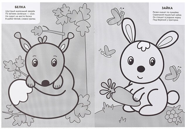 С книжкой В лесу серии Мои первые водные раскраски так легко почувствовать себя волшебником!У нее необычные странички–достаточно просто раскрасить их мокрой кисточкой, и картинки оживут. Крупные рисунки с толстым контуром и большими областями для раскрашивания обязательно понравятся маленькому художнику, а веселые стихи познакомят его с попрыгуньей-белкой, быстрым зайкой, колючим ежиком и другими животными, которые обитают в лесу.