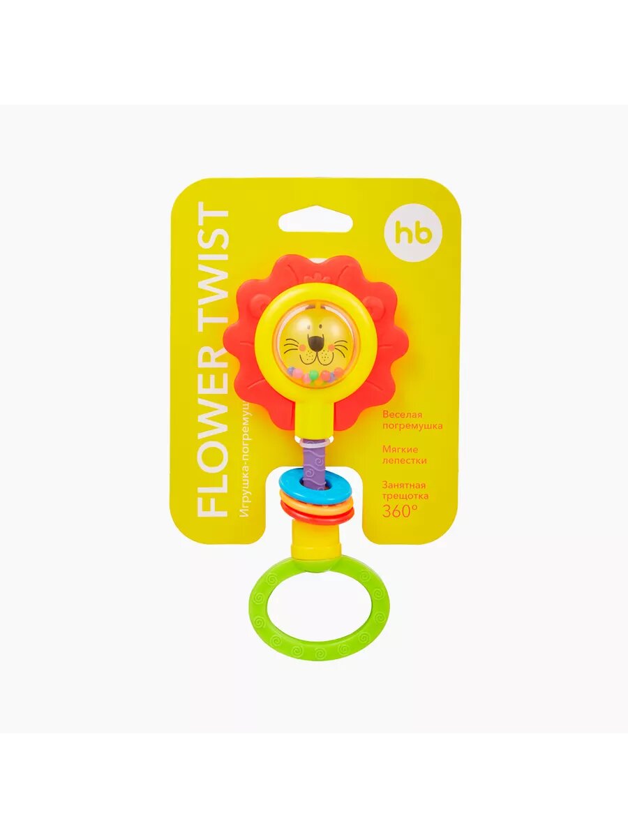 Погремушка Happy Baby Flower Twist. Погремушка FLOWER TWIST – это прекрасный подарок ребёнку с самого раннего возраста. Погремушка в виде милого цветочка с улыбающейся мордашкой не оставит равнодушным Вашего малыша. Цветочек представляет собой обрамлённую яркими рифлёными лепестками прозрачную серединку-шарик с изображением дружелюбного личика внутри. Весёлая мордашка привлечёт внимание малыша и вызовет положительные эмоции. Так и хочется улыбнуться цветочку в ответ! Внутри шарика перекатываются бусинки, которые создают шумовой эффект и привлекают внимание к игрушке. Яркие лепесточки сделаны из мягкого безопасного материала, малыш будет их покусывать в период прорезывания зубов: прорезыватель массирует дёсны и снимает болевые ощущения. Круглая ручка-держатель погремушки удобна для захвата и удерживания рукой. При повороте ручка издает громкий звук-треск, развивая слуховое восприятие ребёнка. Яркий цветочек располагается на гибком стержне, что позволяет сгибать погремушку в разные стороны. Очень интересно наблюдать за тем, как цветочек возвращается в исходное положение при каждом сгибании. На стержень нанизаны 3 разноцветных колечка, которые ребёнок будет ощупывать, поднимать и опускать, развивая тактильные ощущения и мелкую моторику рук.