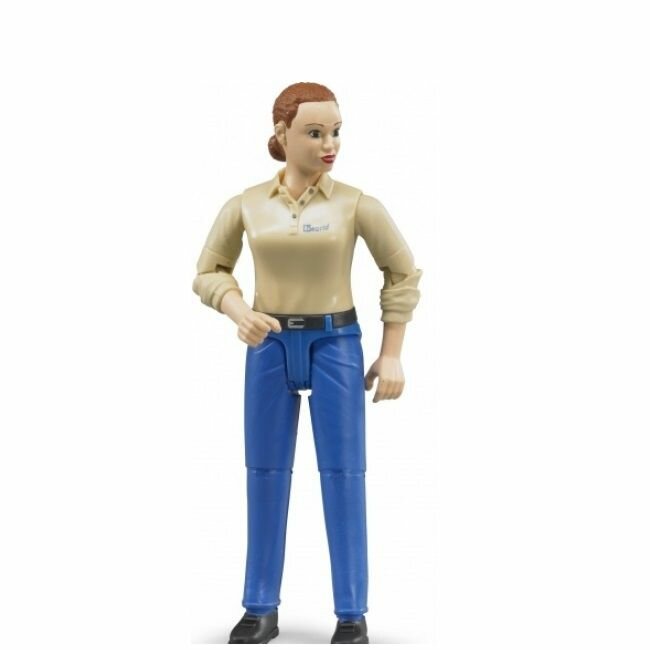 Подвижная фигурка из серии BWorld от компании Bruder выполнена в виде женщины в голубых джинсах. Отличительными особенностями игрушки являются ее визуальное и техническое исполнение. Фигурка обладает подвижными конечностями в местах крепления к туловищу, а также коленных и локтевых соединениях. Внутри игрового процесса данная фигурка сможет выступить, например, смотрителем зоопарка или экскурсоводом по сафари.
