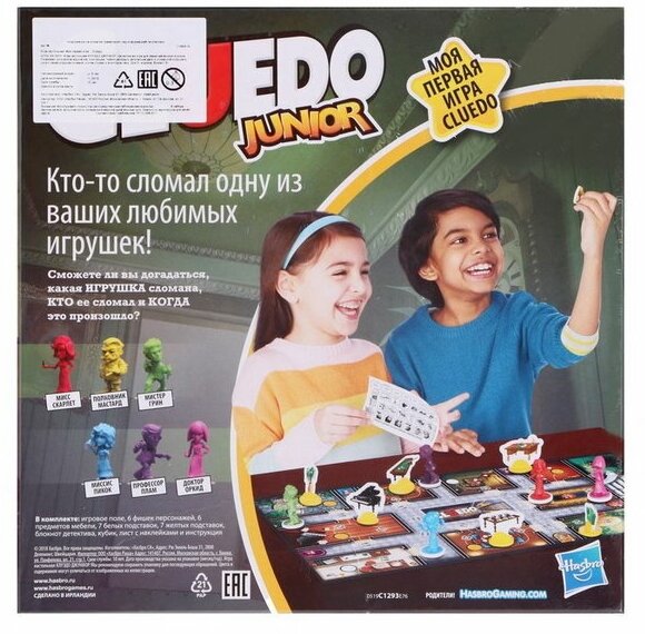 Преступление века!Кто-то съел кусочек пирога, не дожидаясь ужина!Это-не просто досадная случайность, это-настоящее преступление, которое надлежит раскрыть юным детективам, играющим в настольную игру Hasbro Games Клуэдо . Здесь все также, как и во взрослой версии, но намного более ярко и забавно. Играть можно как со сверстниками, так и с родителями, интересно будет всем!