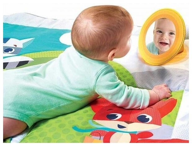 Развивающий коврик для малышей Солнечная полянка от бренда Tiny Love - это превосходное приобретение для самых маленьких исследователей. Уникальный коврик предлагает ребенку отправиться в увлекательное путешествие на поиски новых впечатлений и позволяет посетить чудесный лес, населенный забавными доброжелательными зверюшками. Коврик совмещает в себе множество интересных элементов, среди которых безопасное зеркальце, шуршащие лепесточки, загадочный кармашек, прорезыватель, кольцо для захвата и сатиновые ленточки.