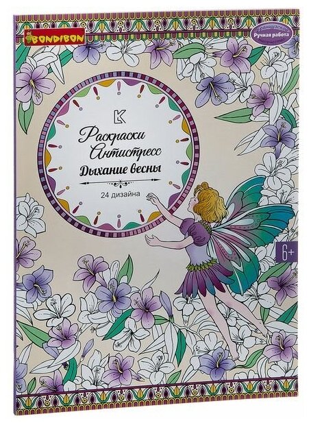 Книга раскрасок-антистресс Bondibon Дыхание весны 24 дизайна размер 285x21 см антистресс Дыхание весны 24 дизайна