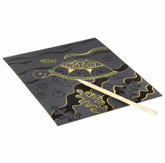 Гравюра - особый вид графического искусства. Сцарапывая верхний слой гравюры специальным штихелем, входящим в набор, ребенок может самостоятельно создать настоящее произведение искусства и почувствовать себя художником. Состав набора: основа с эффектом золота и нанесенным контуром, палочка-скребок (штихель). Для детей старше 6-ти лет. Не рекомендуется детям до 3-х лет. Сделано в Китае.