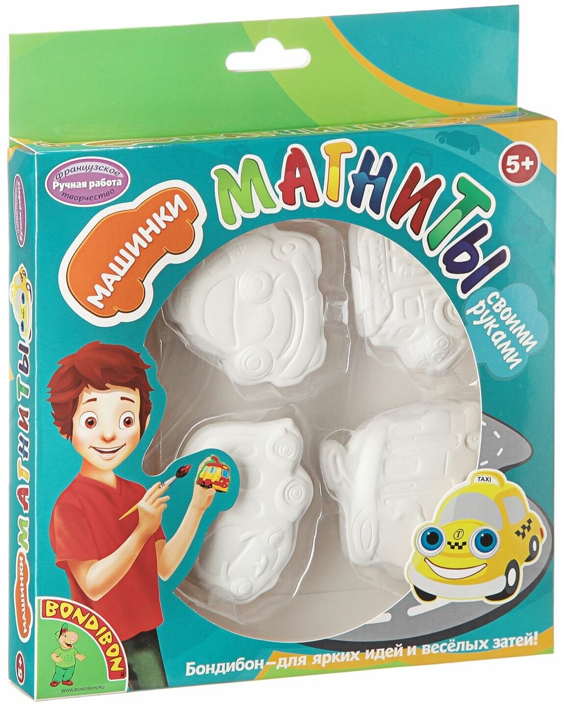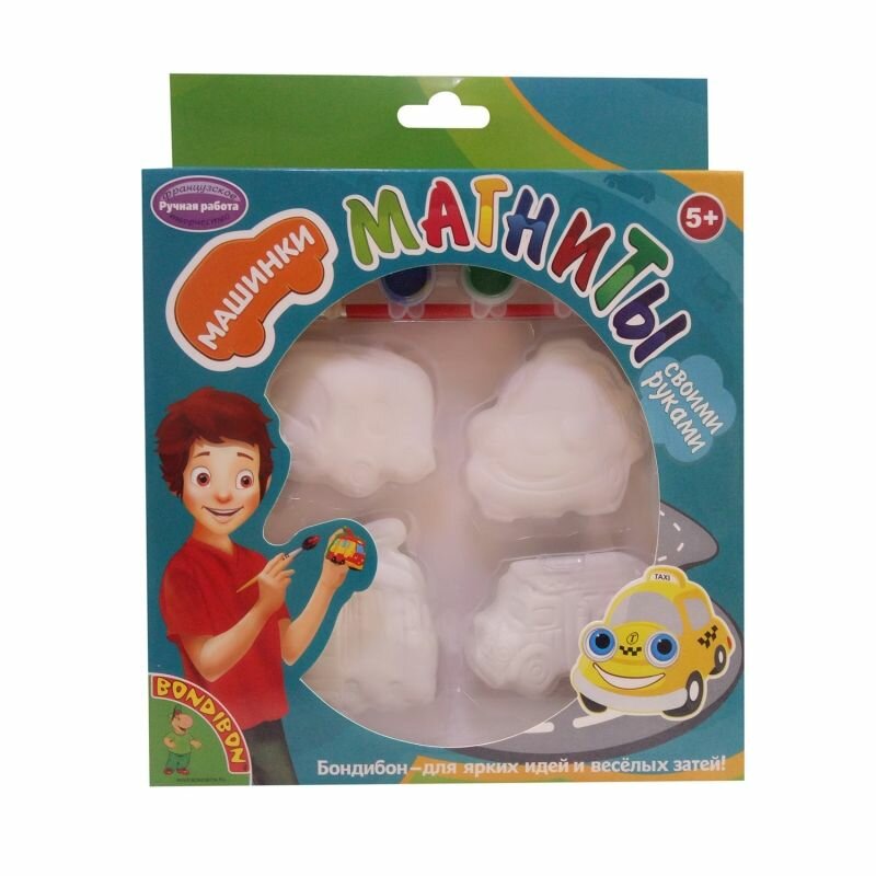 Bondibon Набор для творчества Магниты-Забавный Транспорт Создание поделки своими руками - увлекательный и развивающий процесс, в результате которого можно сделать оригинальный сувенир для родных и близких В наборе Bondibon есть все необходимые элементы - керамический магнит, акриловые краски и кисточка! Творите и развивайтесь вместе с Bondibon!