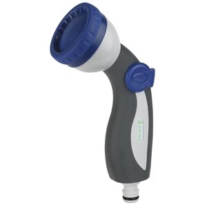 Пистолет-распылитель Green Apple ? функциональное приспособление, которые облегчает процесс полива огорода, сада или приусадебного участка. Пистолет-распылитель выполнен из ударопрочного ABS-пластика, который гарантирует долгий срок эксплуатации приспособления. Для большего удобства предусмотрены 8 режимов полива, что позволяет выбрать наиболее оптимальный для того или иного вида растений. Эргономичная конструкция позволяет удобно его держать одной рукой. Пистолет-распылитель легко крепится к водопроводному шлангу при помощи соединителя.