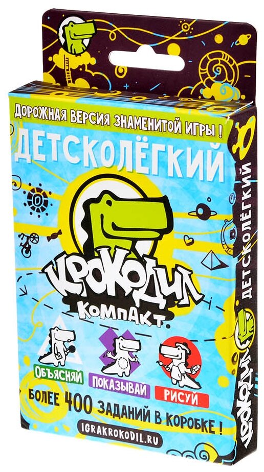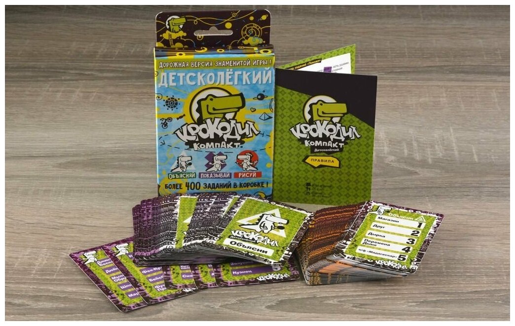 Настольная игра Крокодил теперь в дорожном, компактном варианте. Принцип игры остается тот же, нужно объяснять слова жестами, мимикой или ассоциациями. Данное детское издание отличается тем, что слова в карточках подобраны более легкие, а значит, теперь и маленькие дети смогут поучаствовать в увлекательной игре. Вся игра умещается в маленькой коробочке, поэтому ее легко можно взять с собой в дорогу.