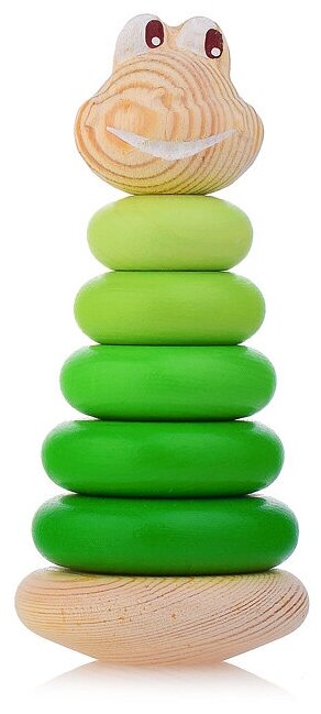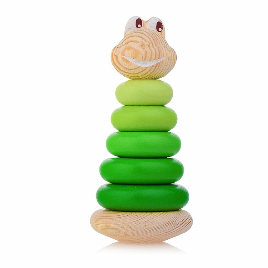Лягушонок Томик представляет собой безопасную для ребенка деревянную пирамидку, при изготовлении которой использованы экологически чистая древесина и безопасные для малыша краски. Отсутствие острых углов является особо ценным. Гладкая отполированная поверхность приятна на ощупь.