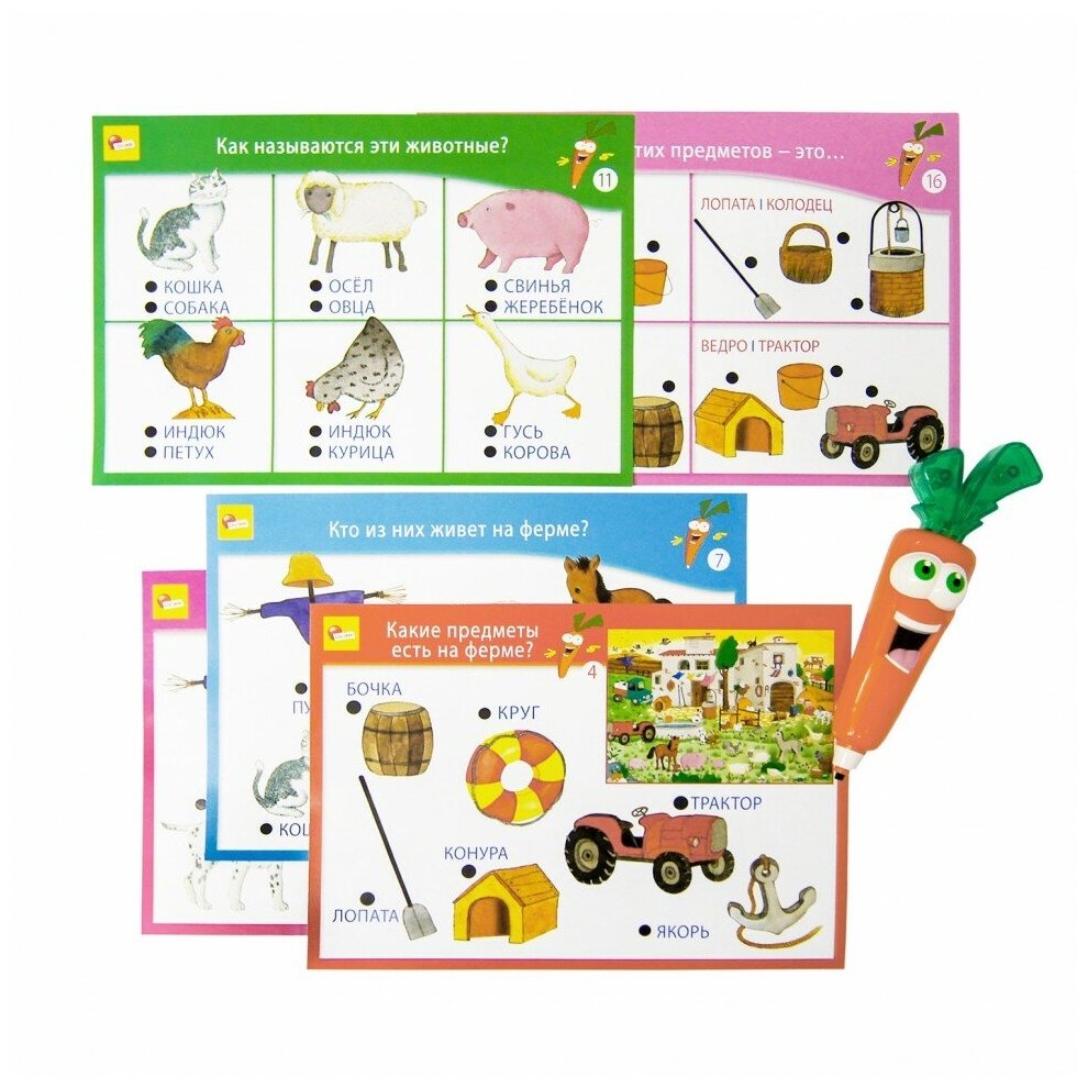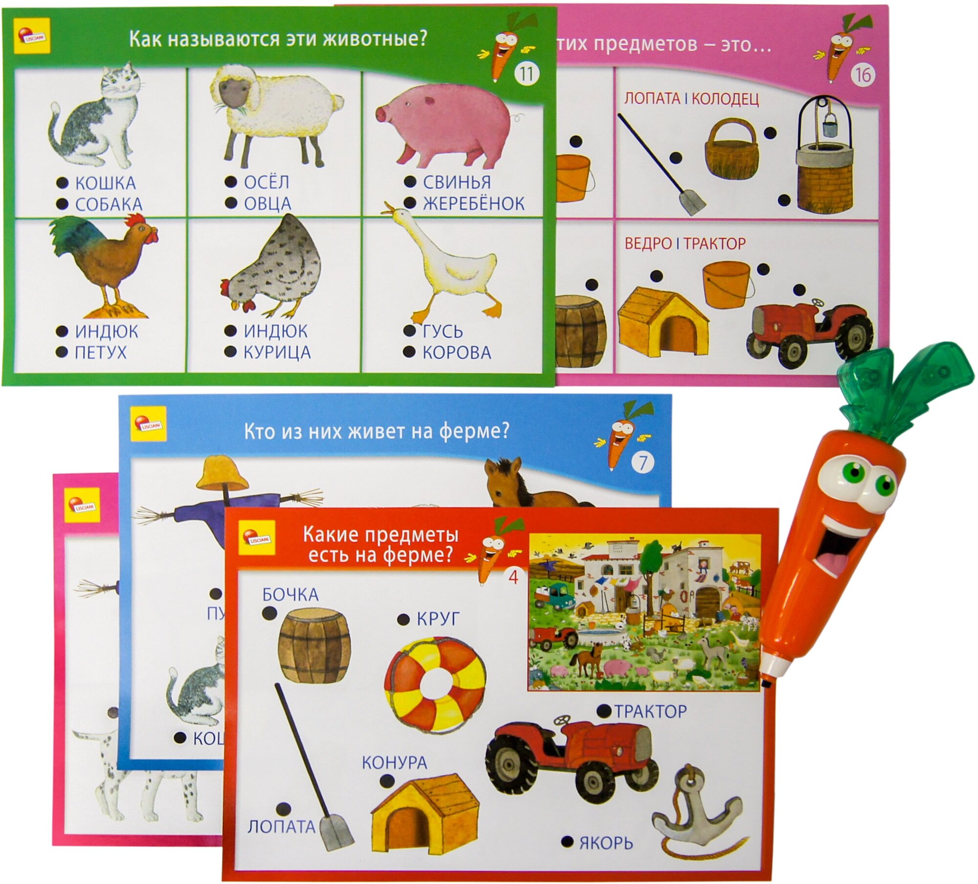 Игра Ферма поможет детям изучить названия животных и оборудования фермерского хозяйства. Яркие карточки и ручка-тестер Волшебная Морковка Каротина превращают процесс обучения в веселую и увлекательную игру. Поэтапная программа обучения позволяет постепенно переходить к более сложным заданиям.