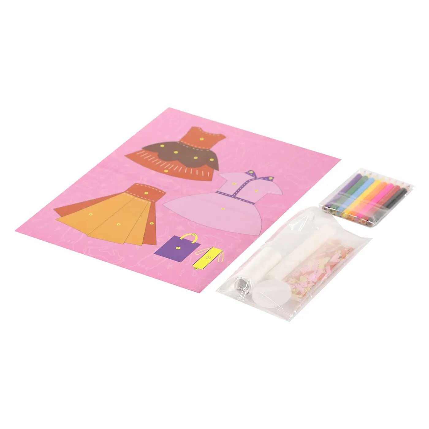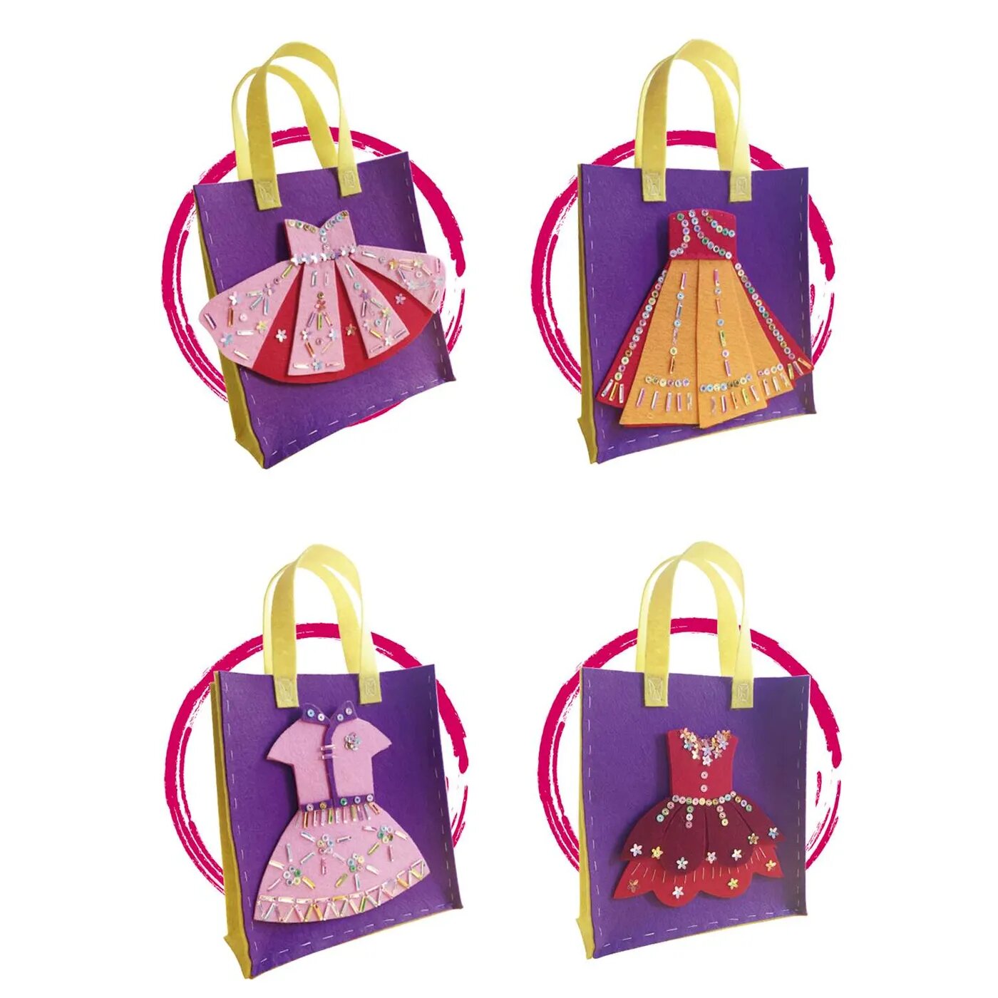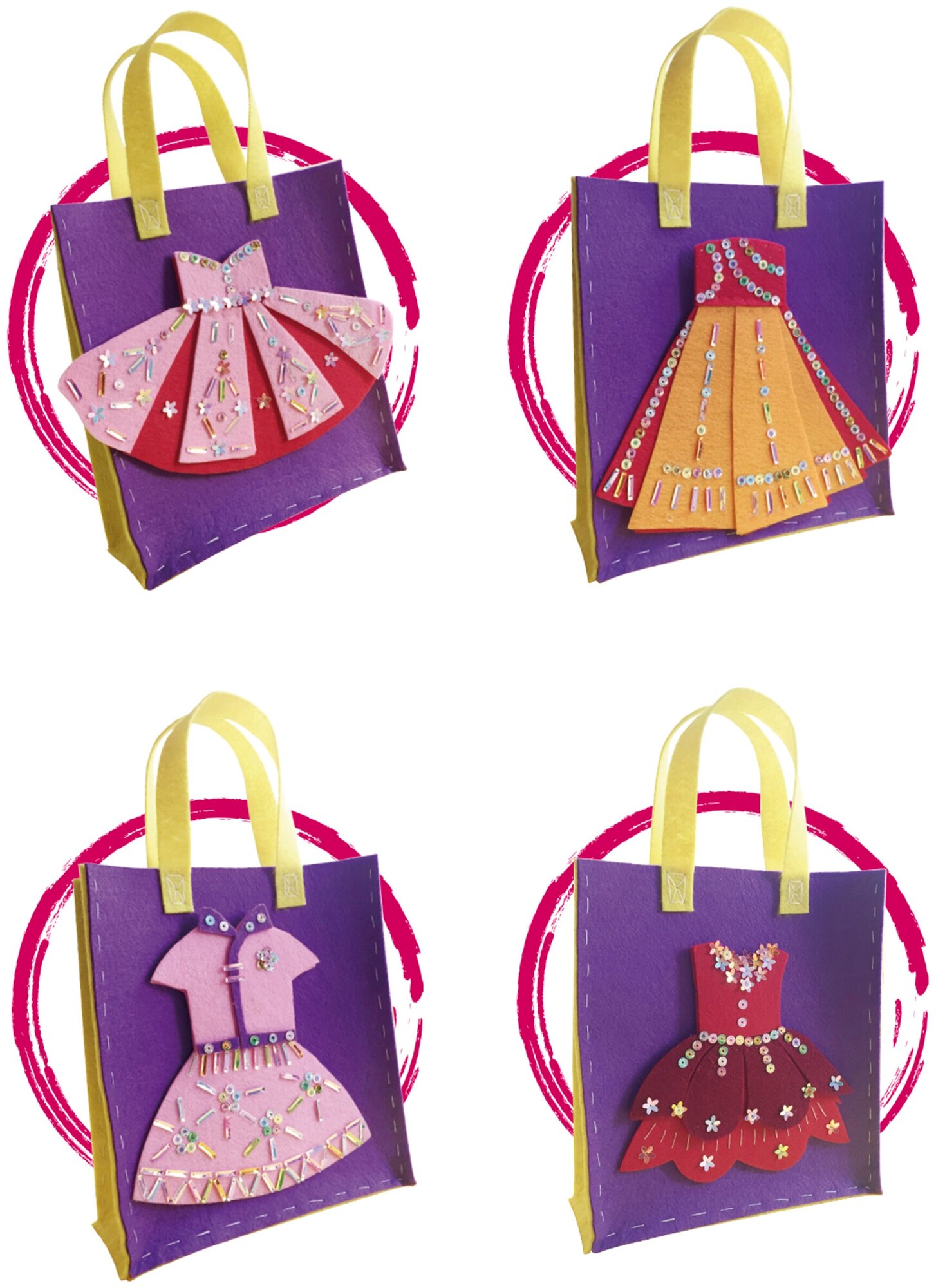 Набор для создания красочных аппликаций и поделок из ткани и картона Модное платье. Помогает развивать воображение и мелкую моторику. Красочная инструкция подскажет как декорировать сумочку модными дизайнерскими платьицами.