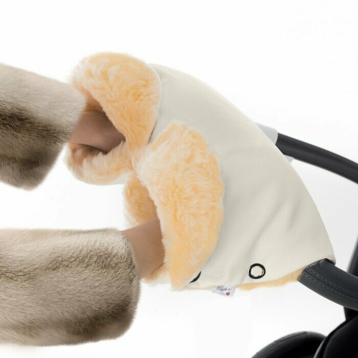 Муфта для рук на коляску Esspero Linda - универсальный аксессуар для молодых мам и пап, подходящий к любым моделям с цельной ручкой. Внешний чехол сделан из износостойкой влагоотталкивающей экокожи. Внутренний утеплитель – мягкая бежевая шерсть тонкорунной овцы. Муфта имеет дополнительные кнопки для изменения формы, резинки для плотного прилегания к рукам.