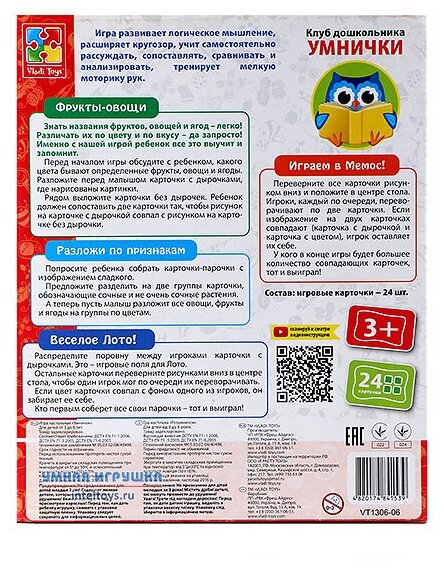 Сервис сравнения цен СкидкаГИД предлагает сравнить цены на товар «Игра Vladi Toys КД Умнички Фрукты-Овощи (VT1306-06)»