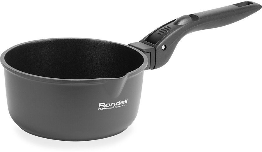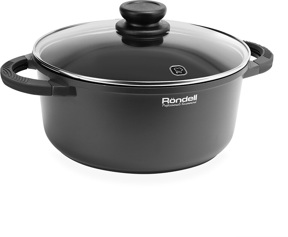 Эксклюзивный набор посуды Rondell имеет тёмно-серую матовую внешнюю поверхность, которая отличается высокой износостойкостью. Предметы набора дополнены стеклянной крышкой с жаропрочными свойствами и бакелитовой съёмной ручкой, которую следует отсоединять при использовании изделий в духовке. Посуда, выполненная из литого алюминия, превосходно поддерживает постоянную температуру. Отмечаем, что пища, приготовленная путём томления, особо богата на полезные составляющие.