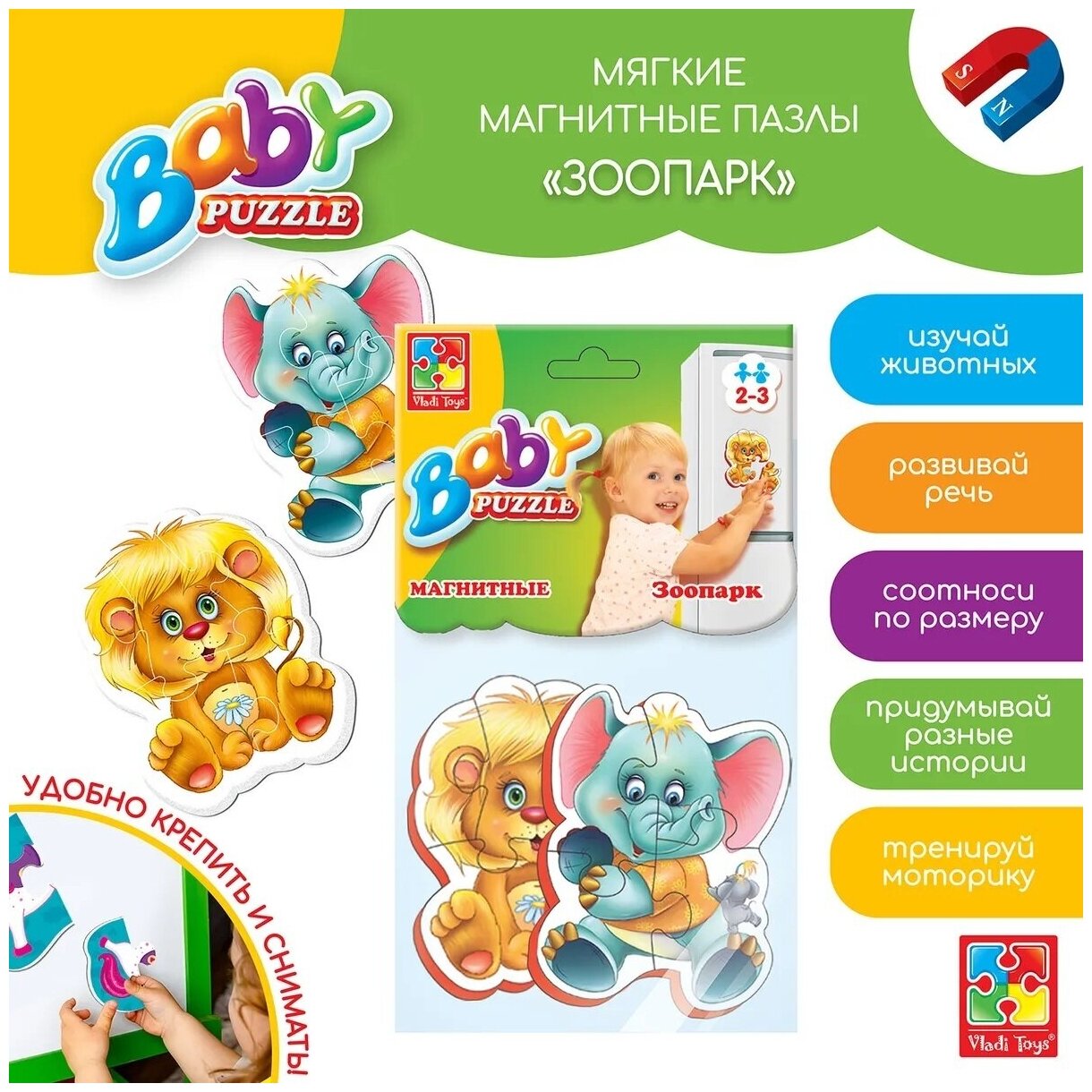 - Vladi Toys VT3208-01 Мягкие магнитные Baby puzzle Зоопарк