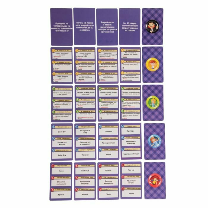 | Комплектация | игровое поле; 56 карт с заданиями; 4 деревянные фигурки; 4 пластиковые фигурки; кубик; инструкция |
