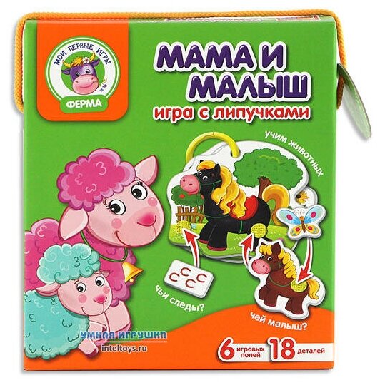 Хотите научить ребенка составлять логические цепочки, а также рассказать ему, что мамы бывают не только у людей, но и у животных? Лучший способ это сделать - приобрести ему набор Мама и малыш от компании Vladi Toys. Каждый ребенок любит играть с липучками, а, когда ты делаешь то, что тебе по душе, всё всегда получается лучше! Эта настольная игра развивает логическое и аналитическое мышление, мелкую моторику рук, память и усидчивость. Кроме того, малыш пополнит свой словарный запас названиями животных и сможет отличить лошадку от овечки. Игру удобно брать с собой за счет кольца из пластика, которое позволяет скреплять все игровые поля между собой: при переноске точно не потеряется ни одна деталь! Красочный дизайн игры наверняка понравится любому ребенку в возрасте 3–5 лет.
