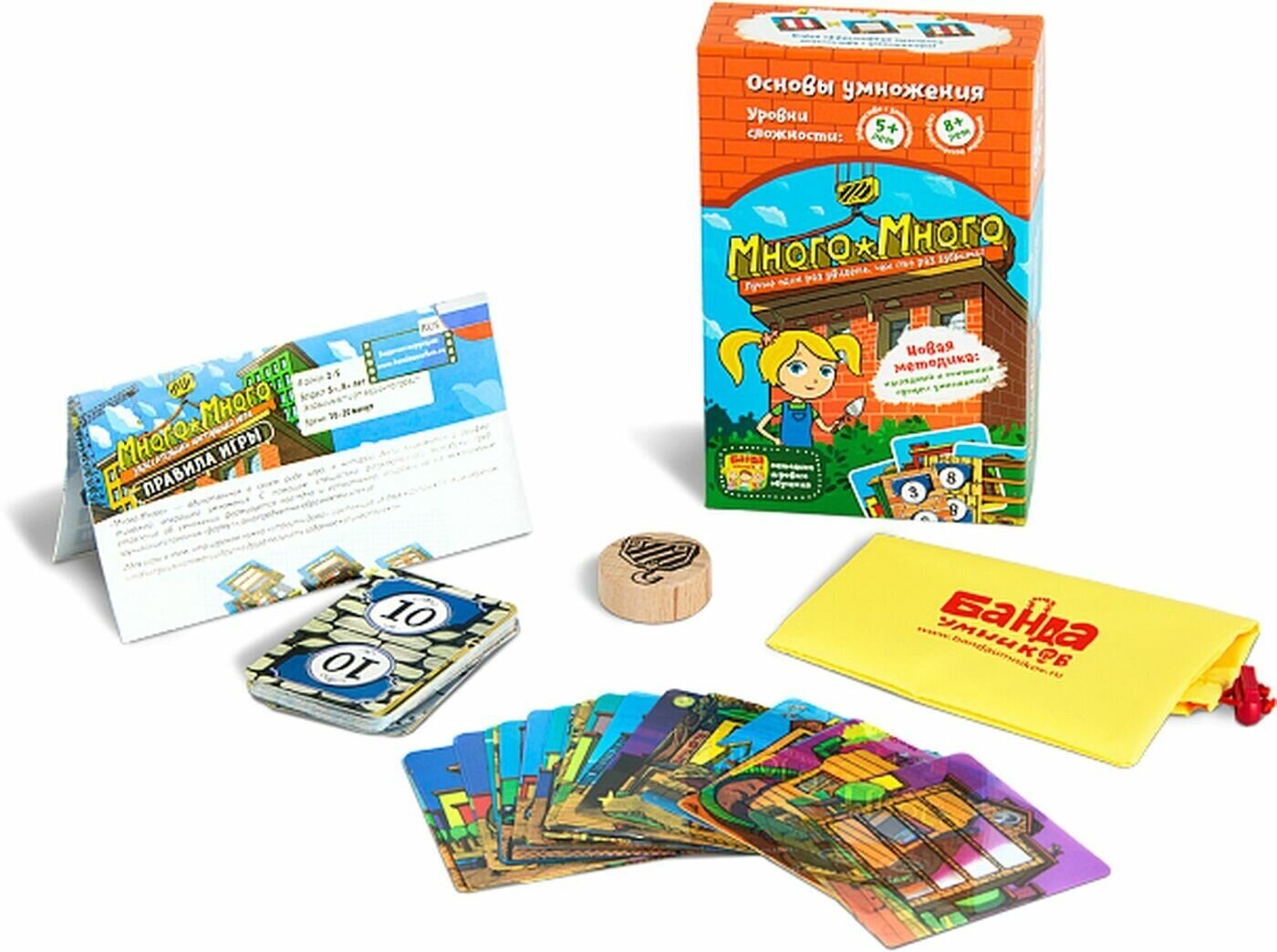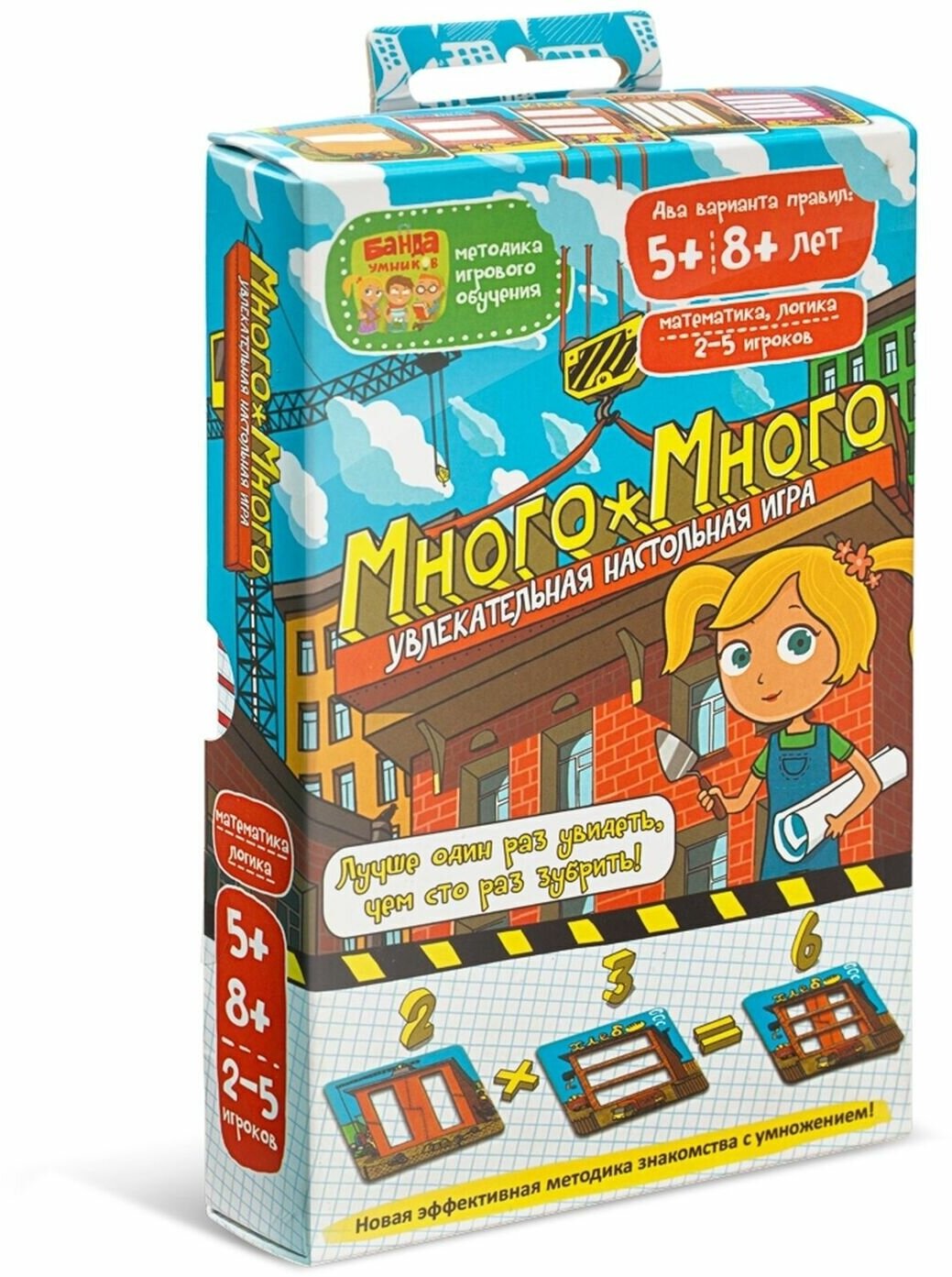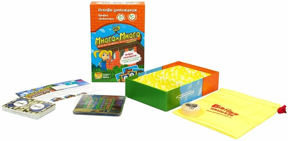 Яркая и веселая игра, построенная на уникальной методике изучения умножения. Много-Много - единственная в своём роде игра, в которой дети знакомятся с арифметической операцией умножения. С помощью специально разработанной методики представления об умножении формируются наглядно и естественно, опираясь не на механическое заучивание словесных формул, а на предметно-образное мышление. Идея игры в том, что игрокам нужно строить дома, состоящие из двух карточек, таким образом, чтобы при их наложении друг на друга получать заданное количество окон. Игровой набор включает в себя карточки с изображением домов, окна в этих домах прозрачные - в этом главная фишка методики! Соединив две карточки с количеством окон два и три вы получите дом, в котором количество окон будет шесть: 2х3=6. Сами дома нарисованы очень ярко и необычно, просто рассматривать их - отдельное удовольствие. Также в наборе есть карты с заданиями, игровая фишка, симпатичный мешочек для хранения из водонепроницаемой ткани и подробная инструкция с оригинальными иллюстрациями. В Много-Много предусмотрены два варианта игры. В обоих есть возможность регулировать сложность игры, подстраивая её под вашего ребенка. Оба варианта игры будут увлекательны как для тех, кто только начинает знакомиться с таблицей умножения, так и для тех, кто уже твердо её знает. Если игра Много-много пришлась вам по сердцу, вы наверняка по достоинству оцените ещё одну нашу игру на умножение - Цветариум. В ней в игровой форме осваивается уже вся таблица умножения от 1 до 9.