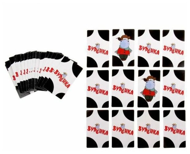 Простая и веселая игра для компании Буренка - то, что нужно для отдыха! С ней время пролетит незаметно, ведь смысл прост - собрать наибольшее количество карт, а в соперничестве с другими этот процесс будет очень забавным. Игра задействует смекалку и внимательность, но более направлена на то, чтобы хорошенько развлечь компанию. Дети будут довольны - им не придется слишком много думать, зато будет море смеха и позитивных эмоций. Отличный повод сблизиться и почувствовать себя уверенно в компании!