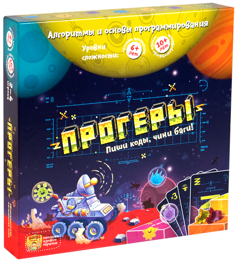 Прогеры не заявляются как профориентационная игра, хотя что-то после неё точно можно решить на будущее. Это увлекательная и азартная игра, но, как и все игры Банды Умников, она включает образовательные элементы: рассказывает про алгоритмы, учит логике, пространственному мышлению и принципам программирования. После неё даже гуманитариям становится понятно, что там за коды пишут эти бородатые дядьки. Хотя теперь программисты в основном бритые, на шезлонгах лежат, в иностранных компаниях работают.