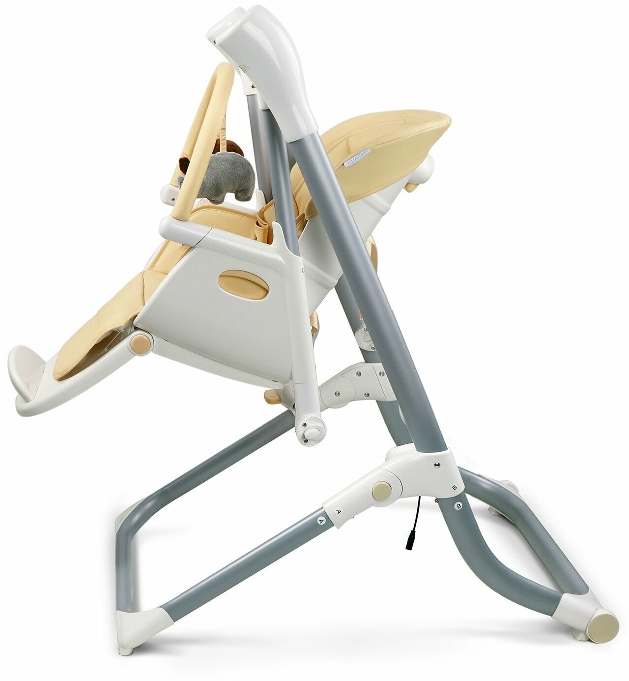 Современная модель-трансформер с целым рядом уникальных функций, которая для малыша с рождения до полугода выполняет роль электрокачелей с дугой с игрушками, а для деток более старшего возраста (весом до 18 кг) – роль стульчика для кормления. Электрокачели имеют 5 разных скоростей и бесшумный механизм качания, а наклон их сиденья регулируется в 2 положениях в зависимости от возраста. Управляются они не только с панели управления, но и с пульта ДУ, причем можно выставить таймер на 8, 15 или 30 минут. Помимо 12 мелодий с регулируемым уровнем громкости, можно подключить через USB свой источник и подобрать колыбельные по своему вкусу. Питаются электрокачели не только от сети, но и от 4 батареек АА (в комплект не входят), что расширяет свободу передвижения. Когда Nuovita Unico Leggero используется в качестве стульчика для кормления, он предоставляет весь спектр настраиваемых параметров, который присущ современным стульчикам. Для ребенка любого возраста и роста найдется удобное положение. Для того, чтобы маленький непоседа не выпал с сиденья, предусмотрены регулируемые по высоте пятиточечны
