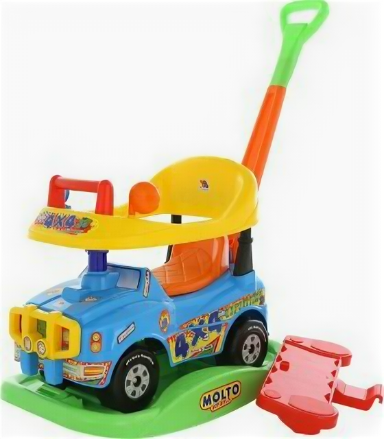 Очень прикольная и надежная машина-каталка, одна из любимых игрушек ребенка. Устойчивая при движении, легкая для переноски и удобная при транспортировке, съемная ручка, под сиденьем есть багажник для игрушек.