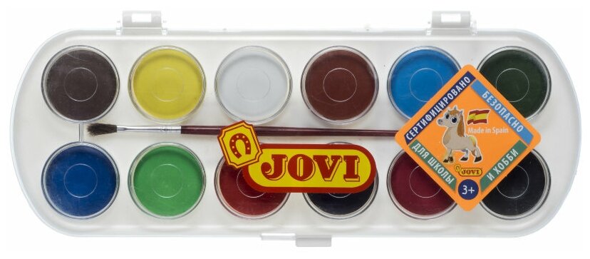 Краски акварельные Jovi 12 цветов Акварель 12 цветов большие кюветы с кистью