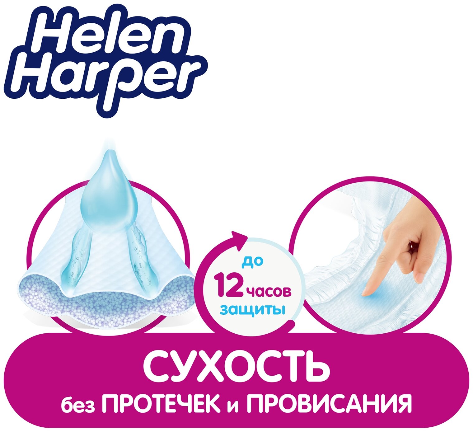 Попробуйте подгузники Helen Harper Baby, с уникальной системой впитывания, которая защищает от протеканий и удерживает жидкость внутри подгузника.