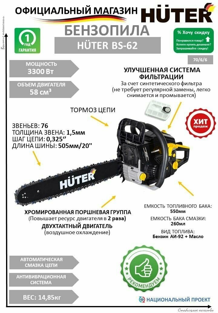 Бензопила HUTER BS-62