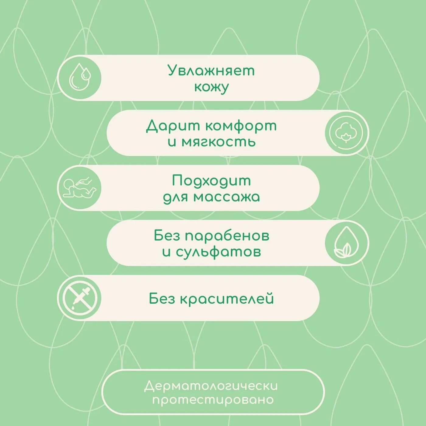 Отлично подойдет для детского массажа. Гипоаллергенно и протестировано дерматологами. Не содержит парабенов.