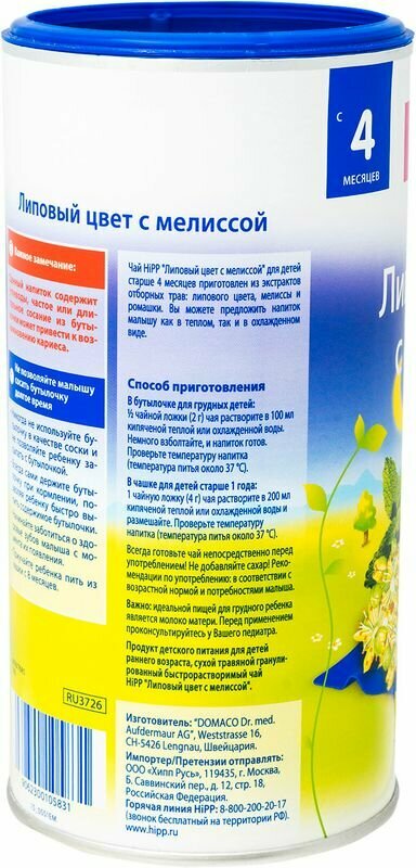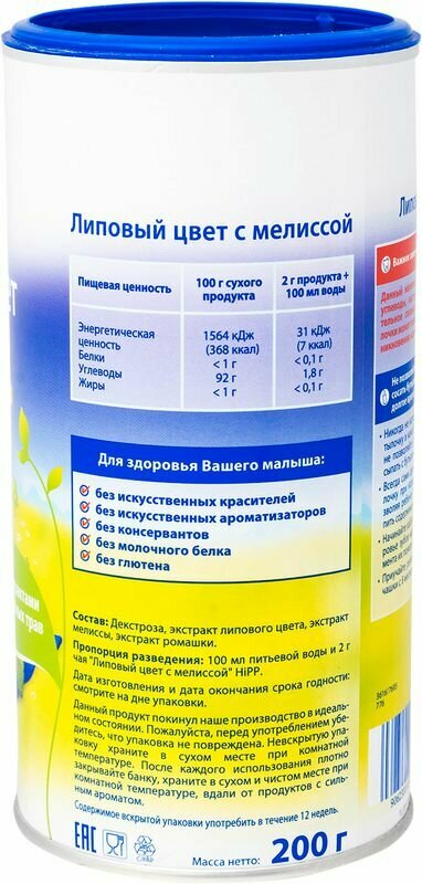 Чай Hipp детский липовый цвет с мелиссой 200 г