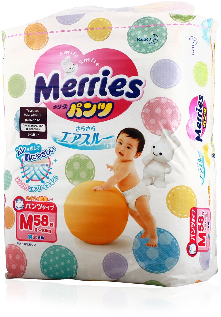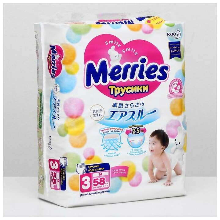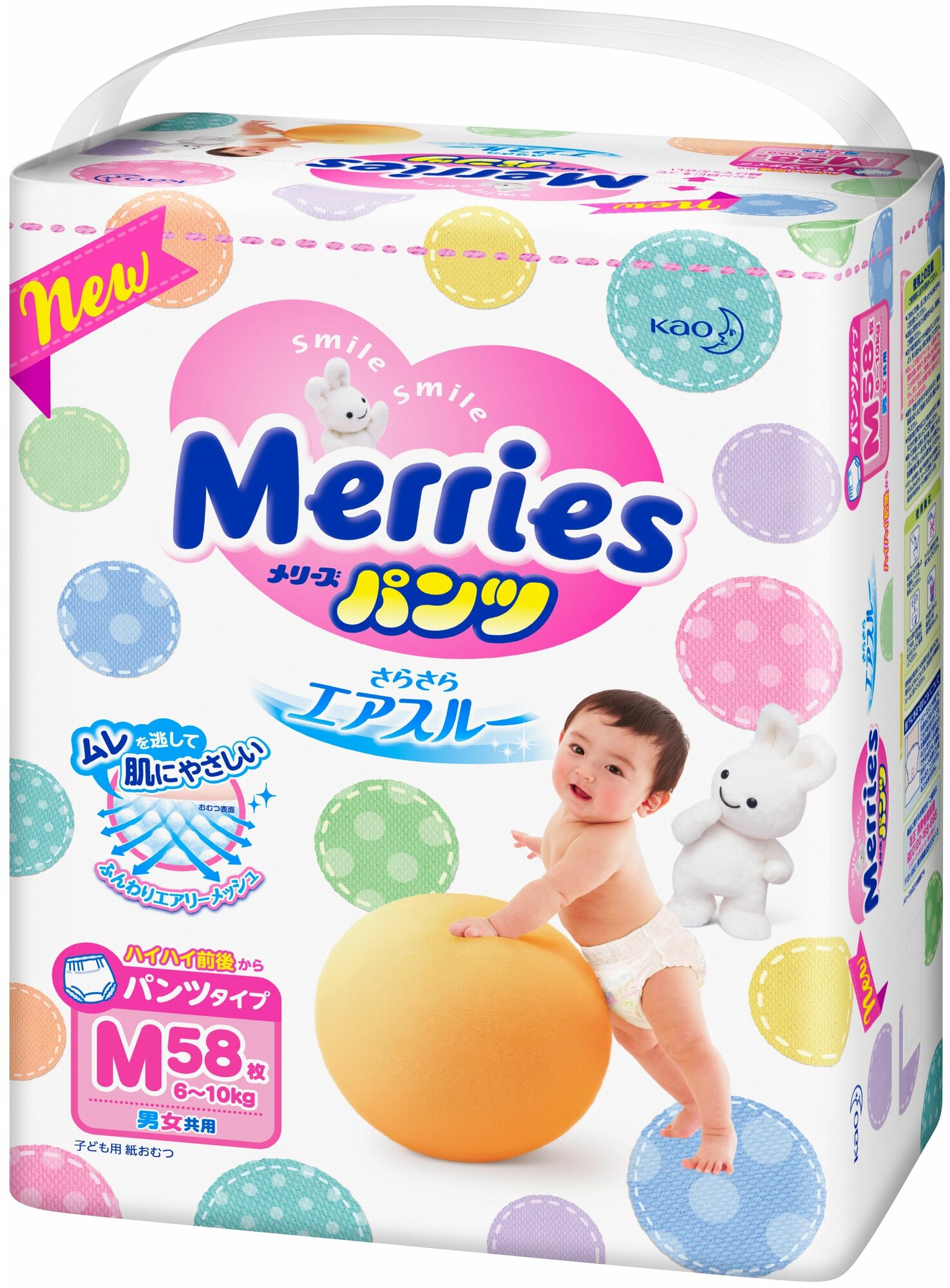 Подгузники-трусики Merries AirThrough (6-10 кг) 56/58 шт Трусики M (6-11 кг)