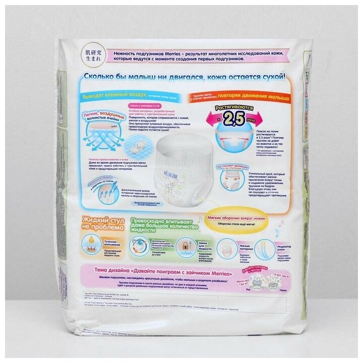 - Симпатичный дизайн с зайкой Merries подарит малышу хорошее настроение.