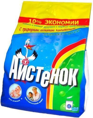 Бесфосфатное экологичное средство для стирки одежды и белья детей и людей с очень чувствительной кожей "АИСТЕНОК" с первых дней жизни. Предназначено для стирки, отбеливания и замачивания детской одежды, в том числе пеленок и белья детей первого года жизни. Для всех видов тканей, кроме шерсти и шелка, в стиральных машинах любого типа и ручной стирки.