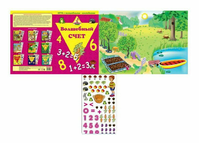 Игра с многоразовыми наклейками Волшебный счет – это игра с яркими и красочными игровыми полями и цветными рисунками. Наклейка, которая нанесена на прозрачную пленку и обладающая уникальной клеевой основой, позволяет приклеивать и отклеивать ее многократно, не прилагая усилий перемещать с места на место.