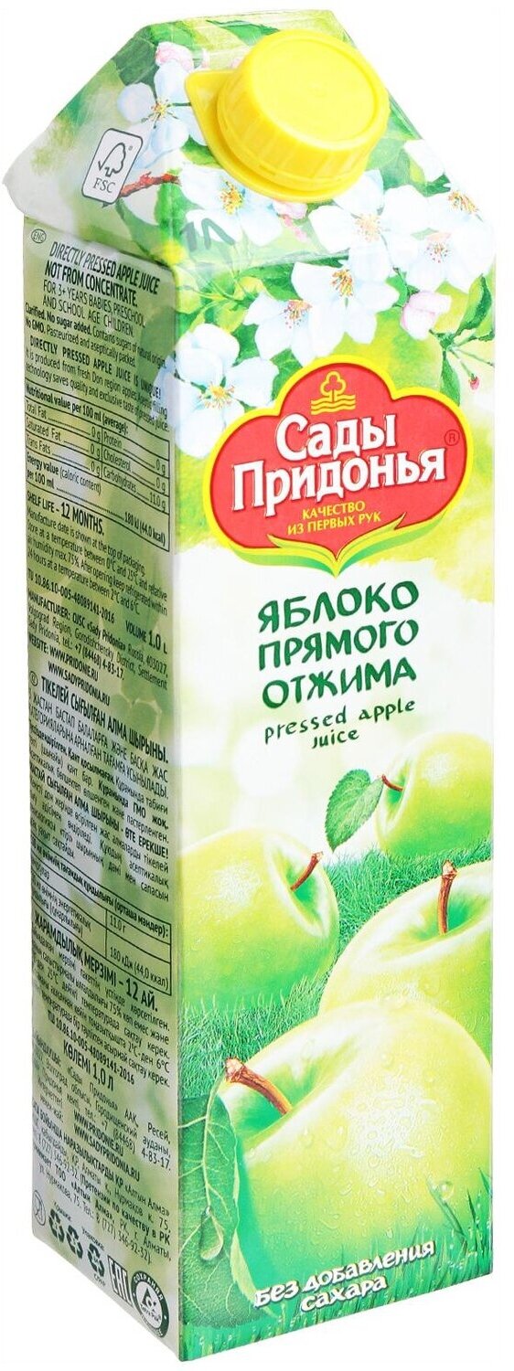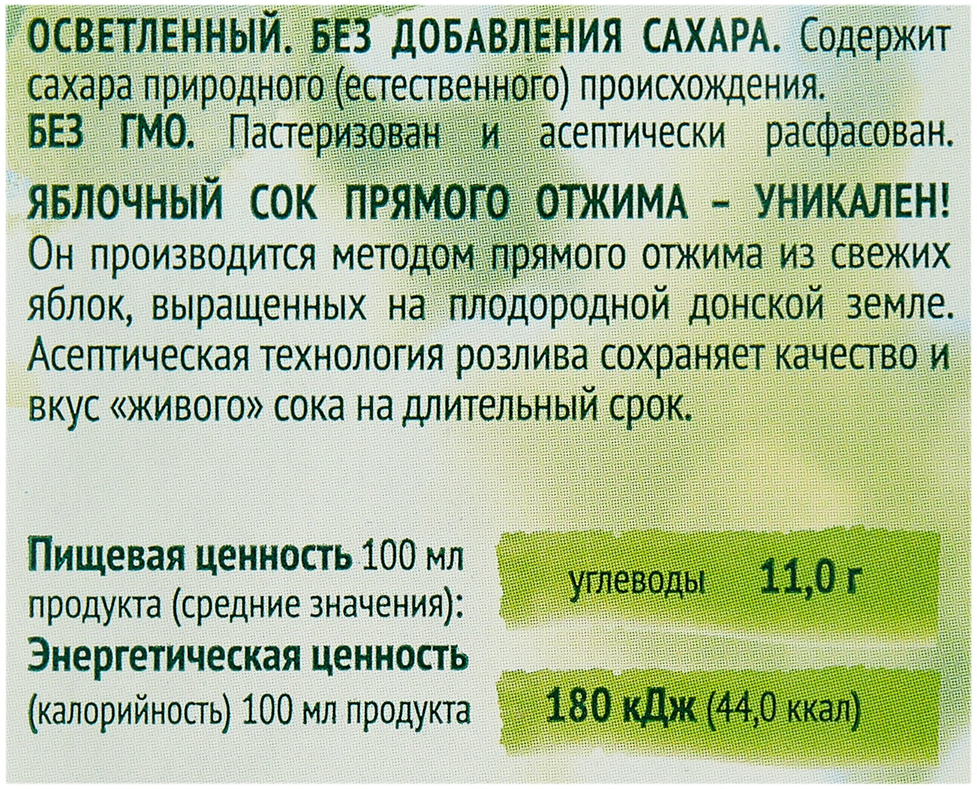 Особенности сока Сады Придонья Яблоко прямого отжима