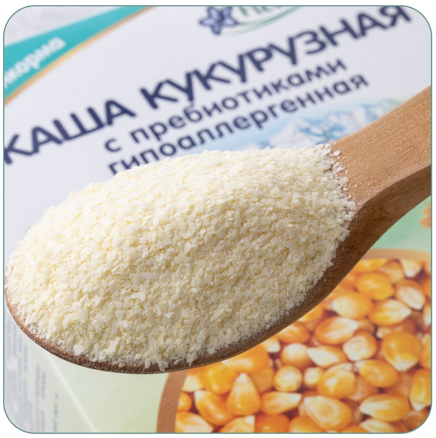Каша идеально подходит для первого прикорма. Разводится легко, быстро и без комочков. Нежная, воздушная консистенция готовой каши в виде «сугробиков» напоминает снег, который ложится на поверхность небольшими пышными неровностями. Вкус каши естественный, присущий данному злаку, с нежным ароматом кукурузы.