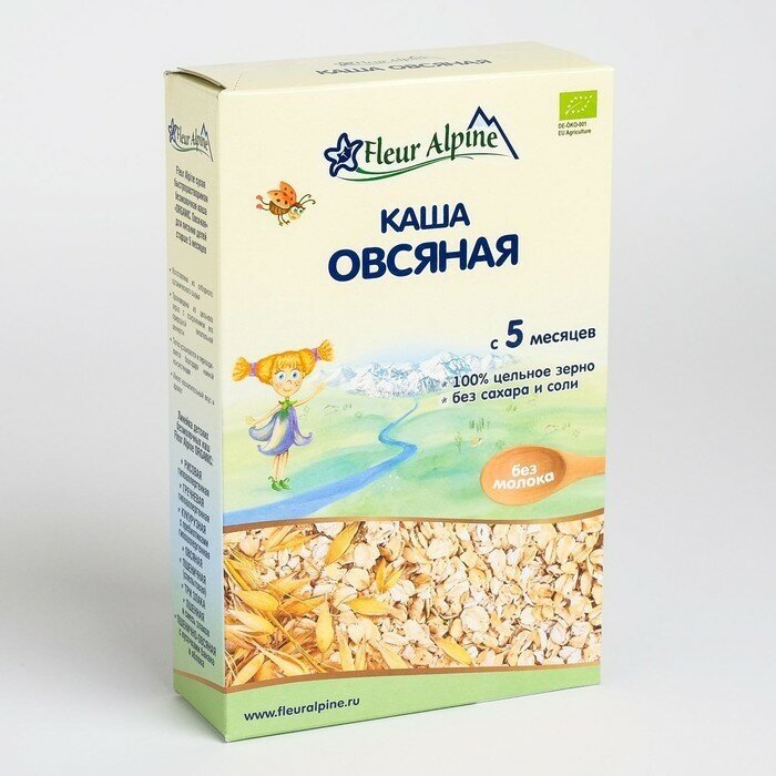 Каша безмолочная Fleur Alpine Овсяная для детей старше 5 месяцев. Не содержит следов молока. Без добавленного сахара. Изготовлена из высококачественного цельного зерна, предназначенного для питания детей. Разводится легко, быстро и без комочков.