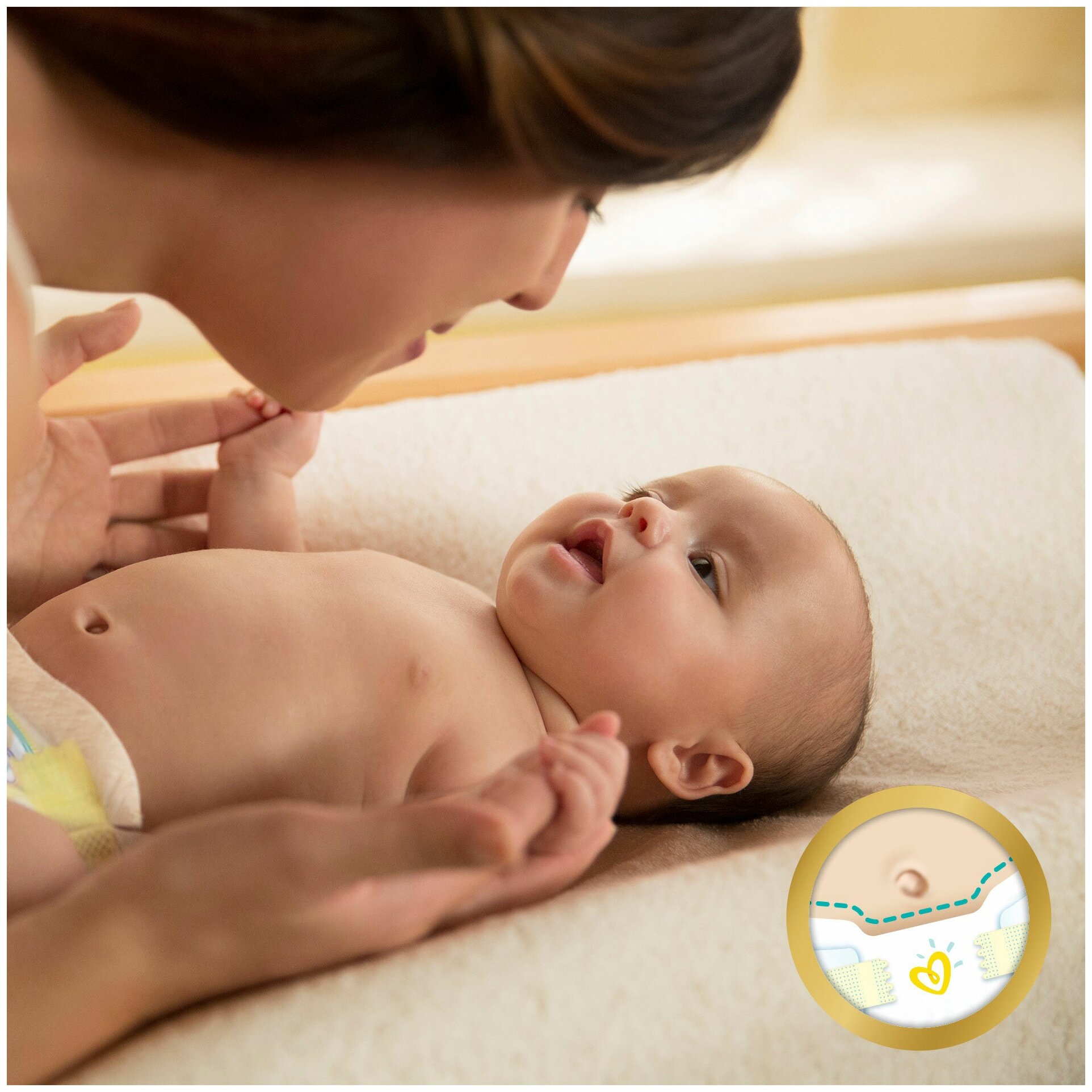 - Комфортно прилегают к пупку: специальный вырез в передней части подгузника позволяет пупочной ране «дышать» и оставаться сухой, благодаря чему пупок лучше заживает.