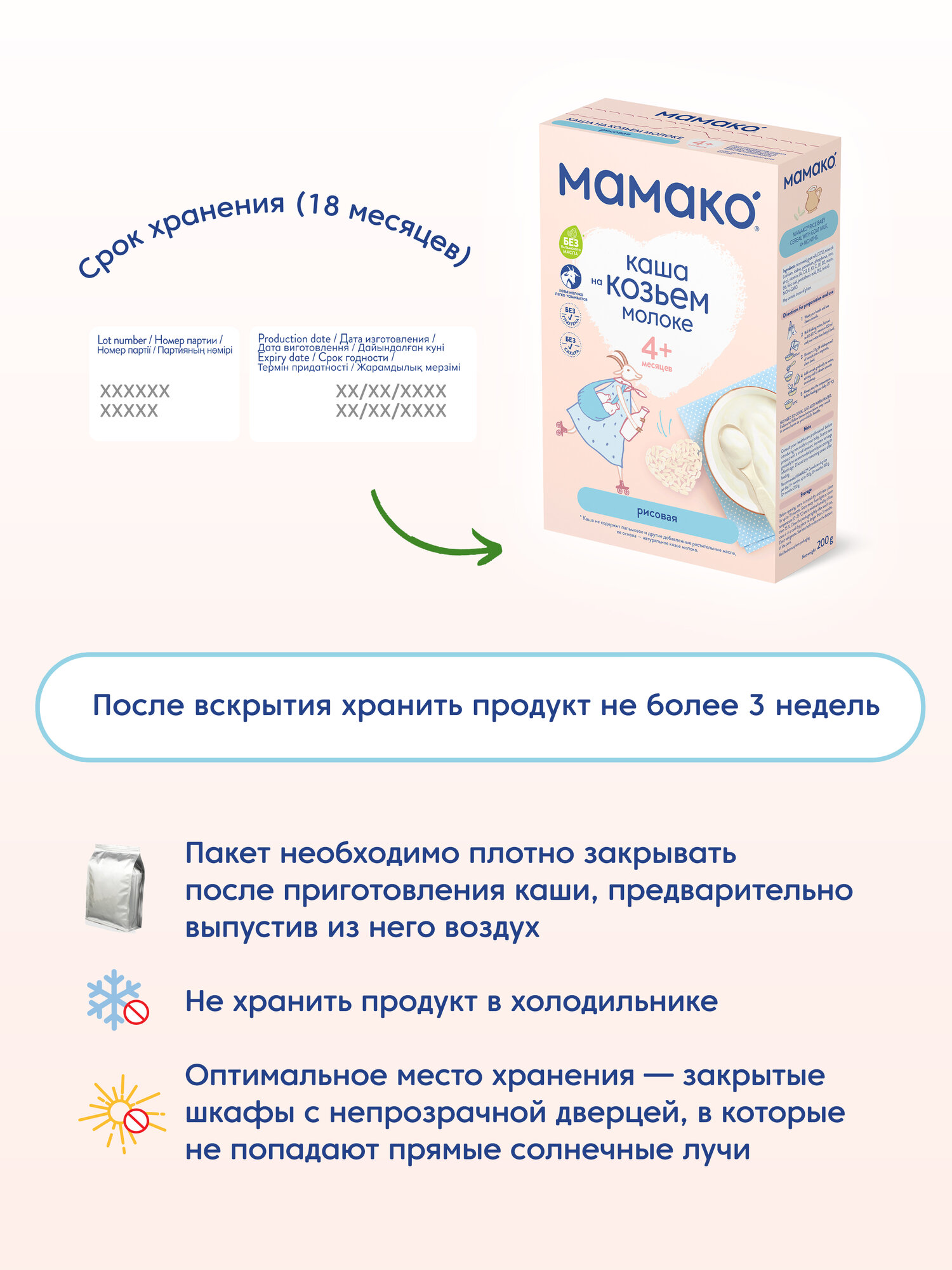 - Каши МАМАКО® без глютена на козьем молоке — бережный первый прикорм