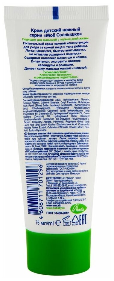 Крем Моё солнышко детский нежный 75 мл (101205)