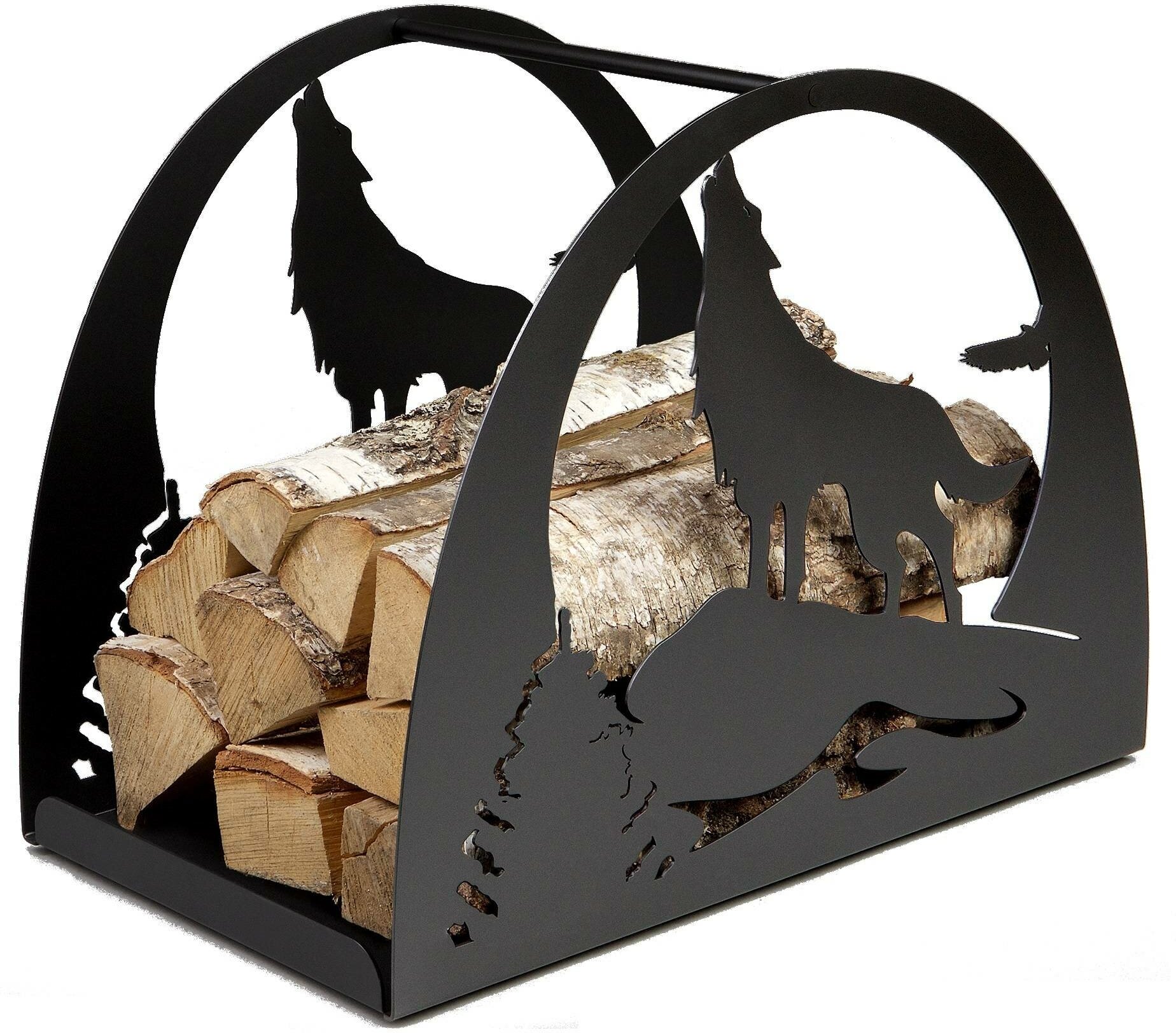 Вырезанная из стали дровница “Волк” удачно впишется в интерьер загородного дома. Удобная форма позволяет хранить поленницу дров длиной 45 см. Дровница окрашена прочной порошковой краской, оборудована ножками, которые уберегут ваш пол от царапин.