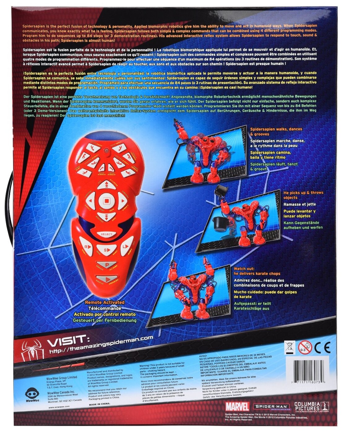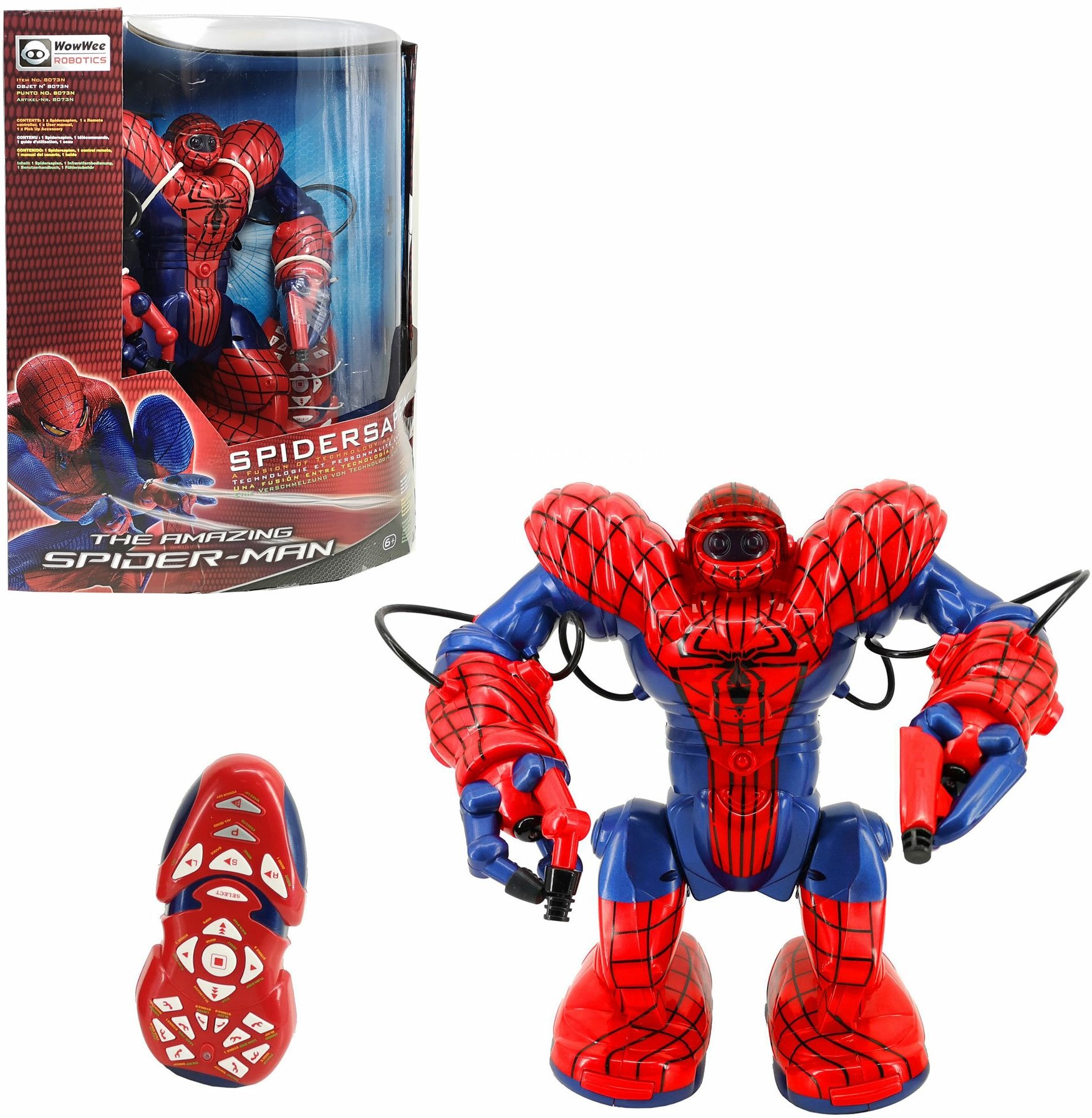Wow Wee SpiderSapien (8073) - включает возможности выбрасывать “паутину” с соответствующим звуковым эффектом, разговаривать ( паучий "жаргон" взят непосредственно из фильма "Человек-Паук" ), двигаться, изображать сражение, а также танцевать "танец Паука".