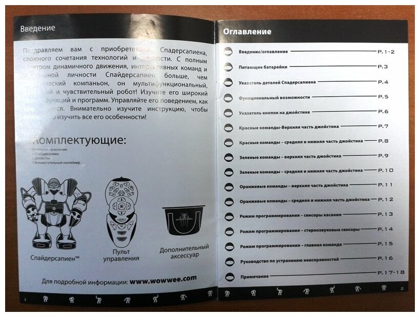 | Комплектация | Робот WowWee SpiderSapien; Джойстик; Документация; Вспомогательный контейнер |