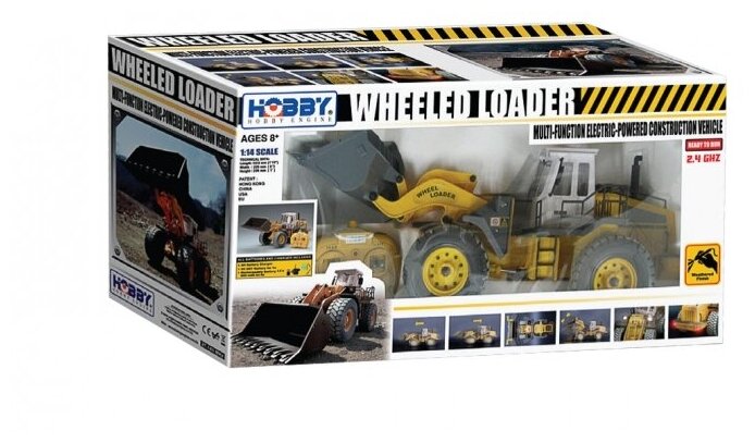 - С помощью пульта управления погрузчик движется, поднимается и опускается ковш. Игровой процесс сопровождается реалистичными звуковыми и световыми эффектами.