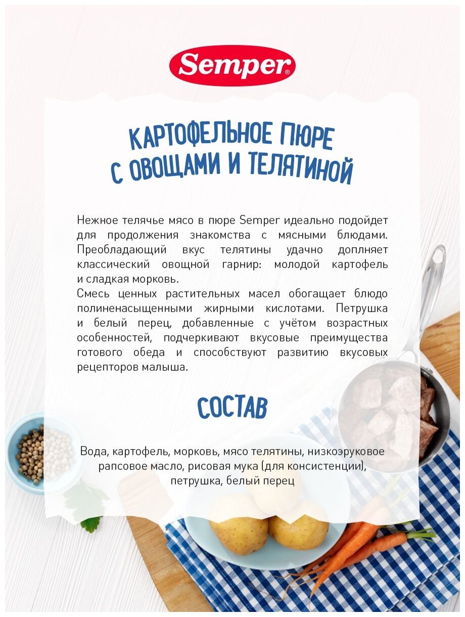 Пюре Semper Картофель с овощами и телятиной 190 г