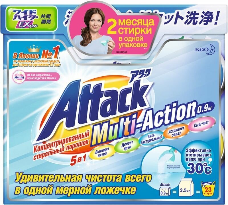 Порошок стиральный Attack Multi-Action универсальный с пятнов. и кондиц. 09 кг (566060/569459)